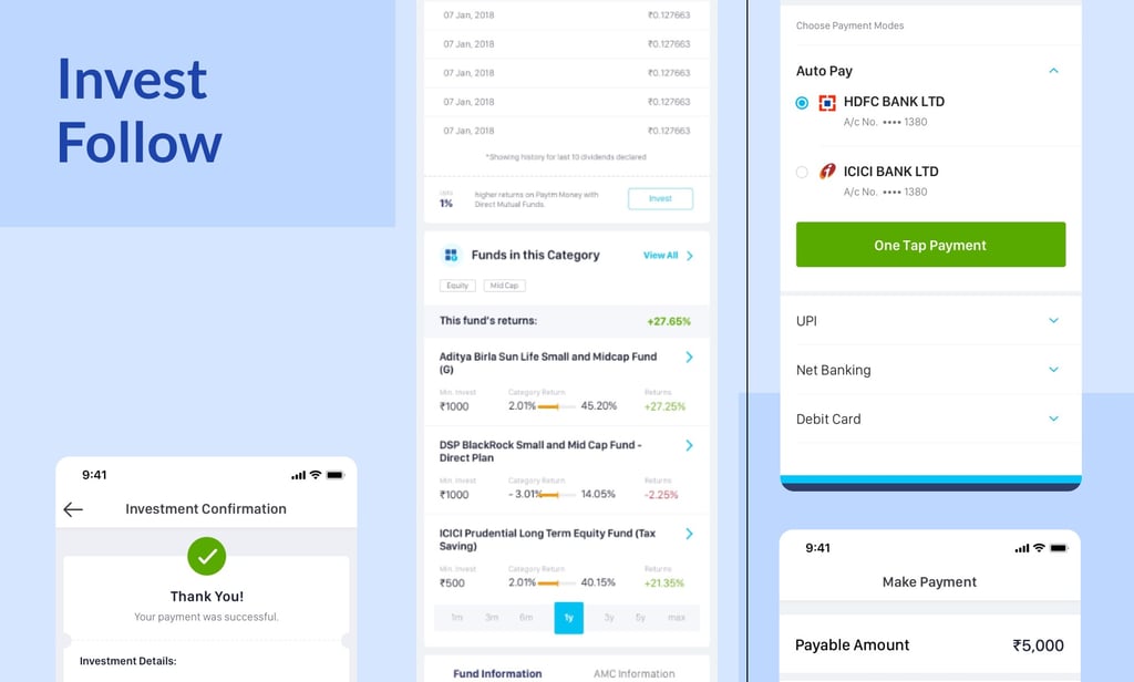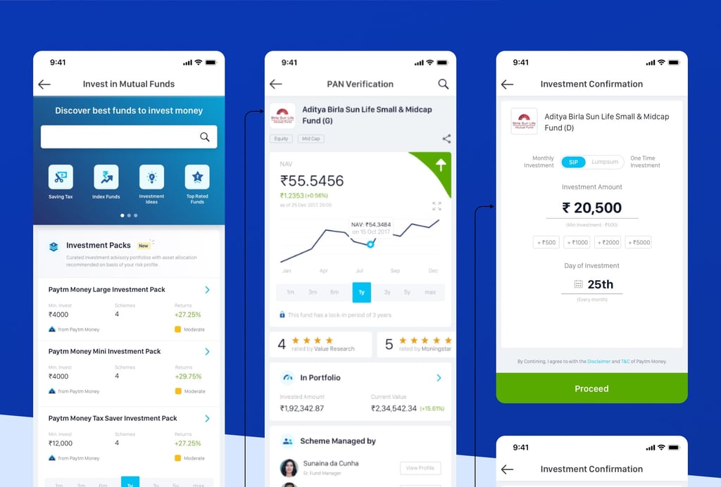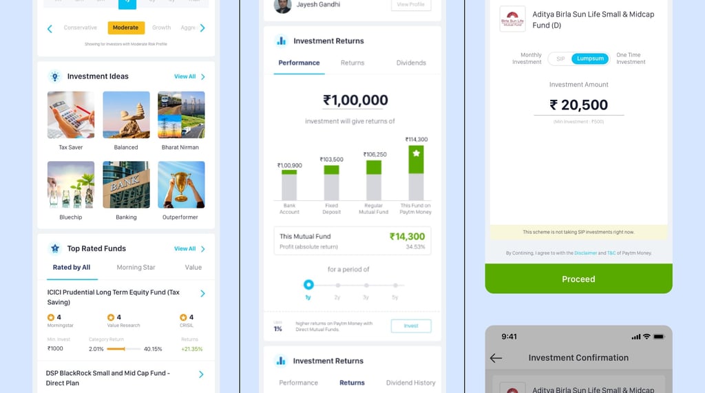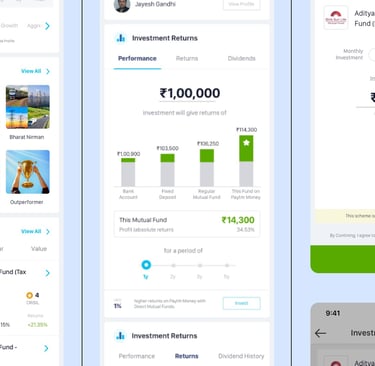Retain the essential modules—KYC, Investment, Portfolio, and Payment—while removing non-critical details such as detailed portfolio analytics, full transaction histories, customer support, and FAQ. This streamlined approach ensures a lightweight, efficient experience within the Paytm app for mutual fund investments.
